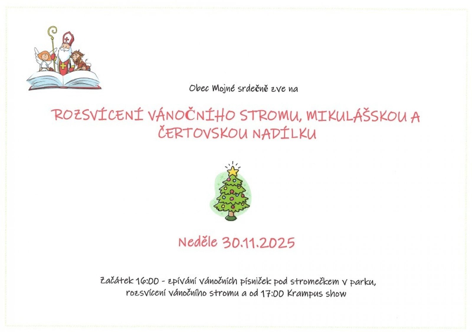 Rozsvícení vánočního stromu, mikulášská a čertovská nadílka