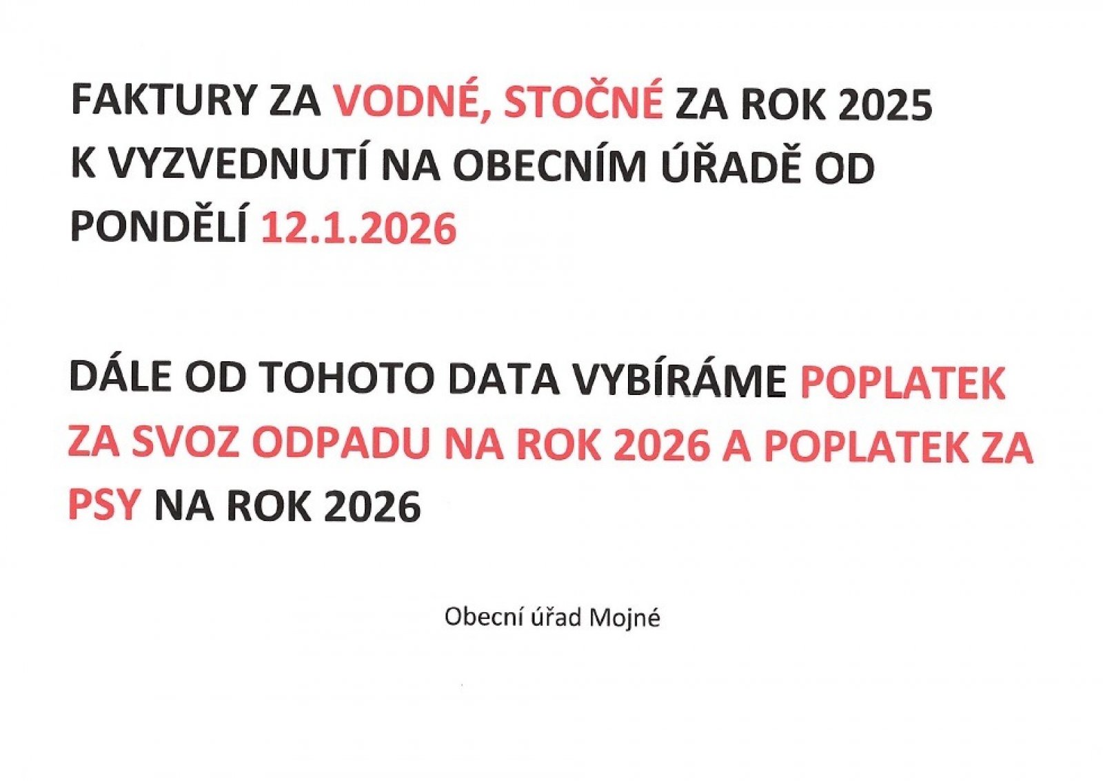 Vodné stočné a poplatky za odpady a psy